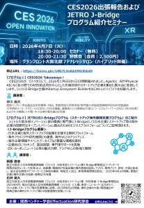 CES2026が、ラスベガスにて、2026年1月6日から3日間開催されました。Agentic AIやPhysical AIになど各分野でのAI技術活用を中心とした先端技術やスタートアップ企業を集めた展示会に変容しています。ジェトロJ-Bridge主催のStartup Ecosystem Builderをはじめとしたハイライトをお届けします。