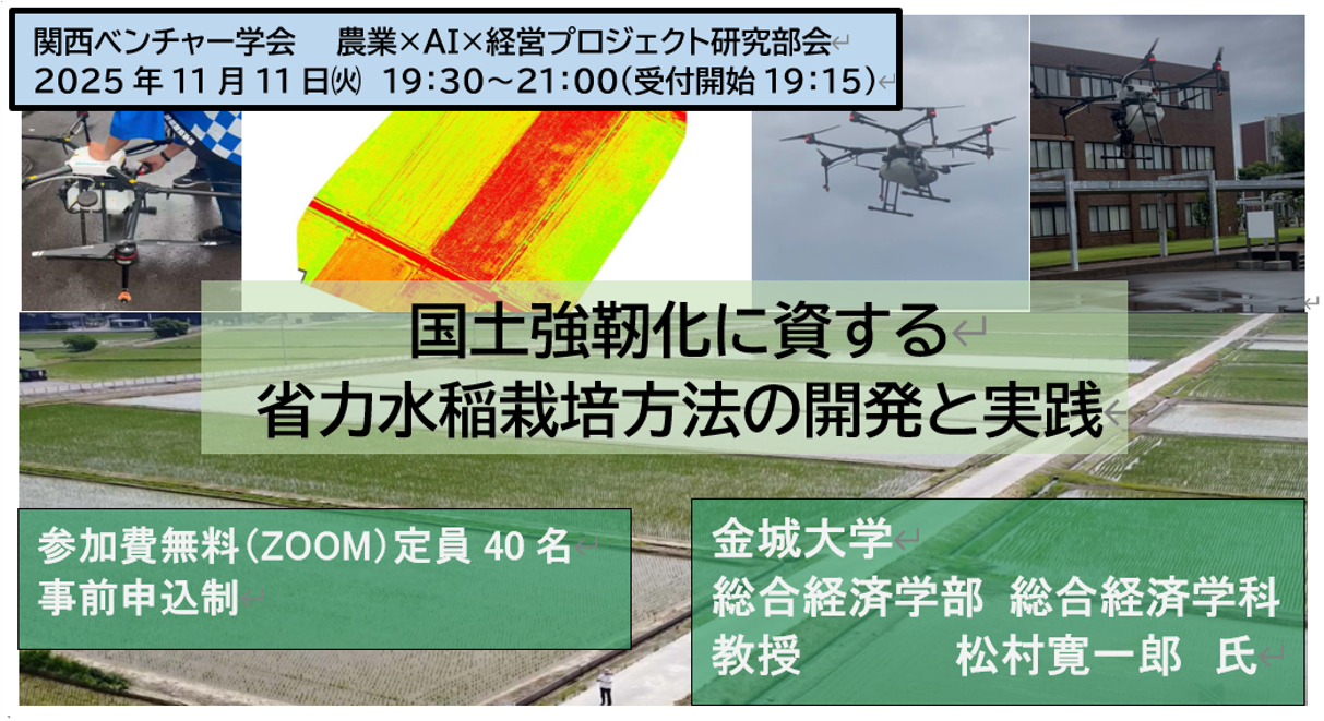 このたび関西ベンチャー学会・農業×Ai×経営プロジェクト研究部会は、ZOOMオンライン研究会を開催します。